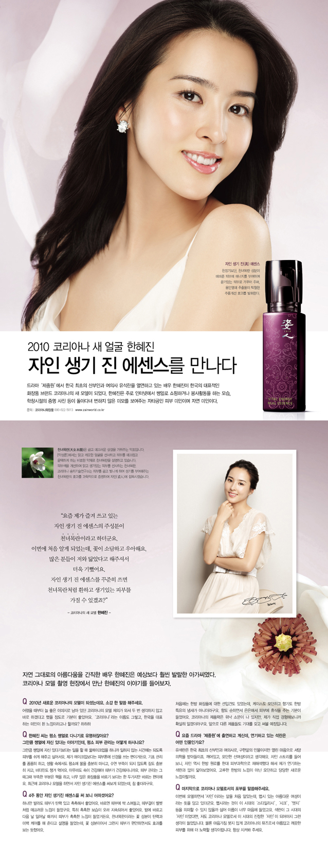 2010 코리아나 새얼굴 한혜진 자인 생기 진 에센스를 만나다.